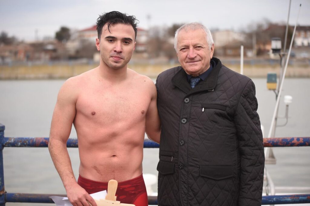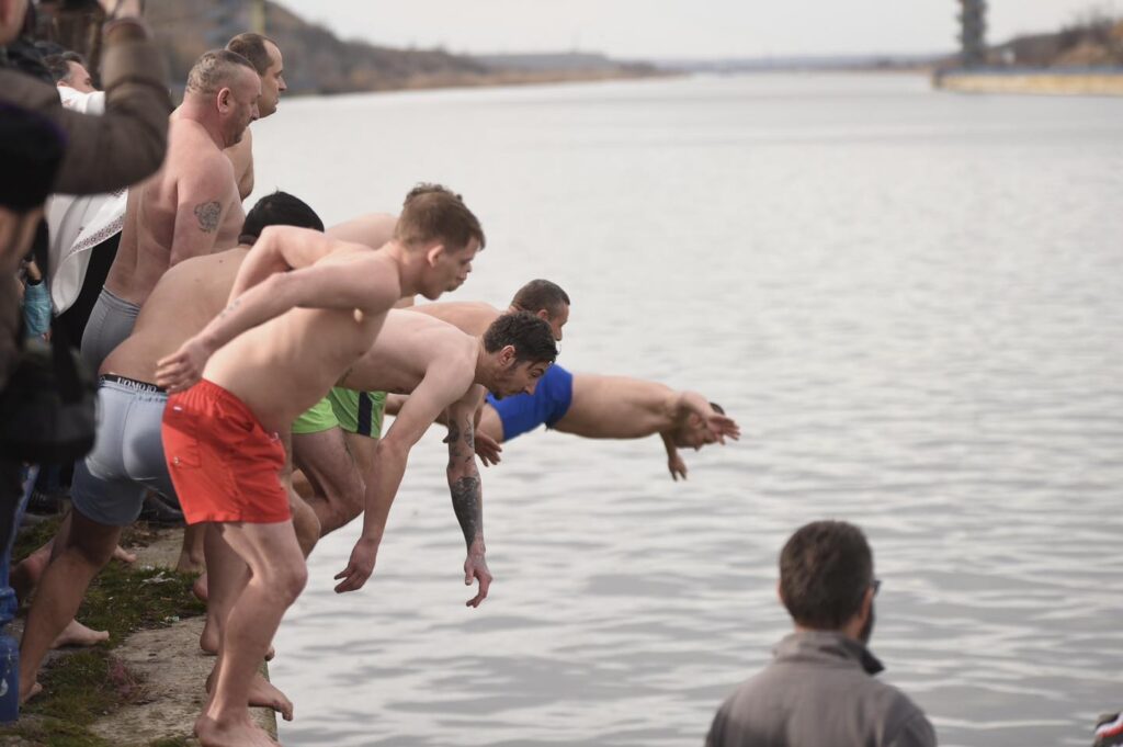 După săvârșirea slujbei religioase, atenția tuturor s-a îndreptat spre marginea canalului, unde 10 tineri așteptau pregătiți să sară în apa rece pentru a recupera crucea. Cristian Tranulea, din Constanța, a fost norocosul care a reușit să ajungă primul la sfânta cruce aruncată de părintele protopop Petrică Ciobanu. Deși are doar 23 de ani, Cristian este profesor de înot, a participat la numeroase concursuri și are în palmares titlul de vicecampion mondial la înot în ape înghețate.