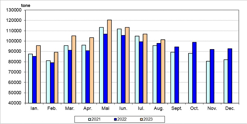 | U.M. | August 2022 | Iulie 2023 | August 2023 | 1.I – 31.VIII. 2022**) | 1.I – 31.VIII. 2023 **) | |