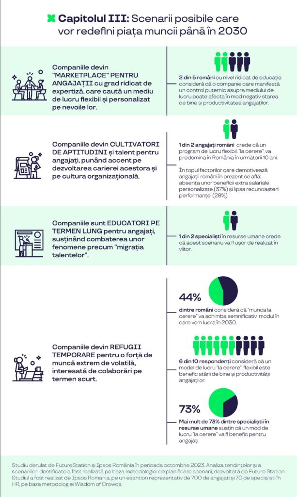 Studiul a fost derulat de FutureStation si Ipsos România în perioada octombrie 2023. Analiza tendințelor și a scenariilor identificate a fost realizată pe baza metodologiei de planificare de scenarii, dezvoltată de Future Station. Studiul a fost realizat de Ipsos România, pe unui eșantion reprezentativ de 700 de angajați și 70 de specialiști în HR, pe baza metodologiei Wisdom of Crowds.