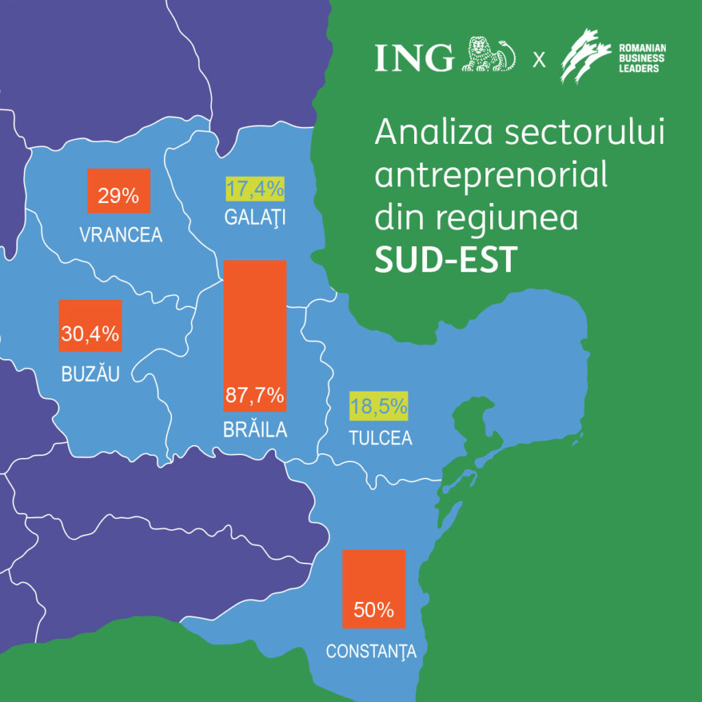 În prezent, 324 de companii antreprenoriale din regiunea Sud-Est au activități de export și 211 de firme au o cifră de afaceri de peste 10 milioane de euro, potrivit studiului ScaleOut 4×10, realizat de Fundația Romanian Business Leaders (RBL) și ING Bank România.