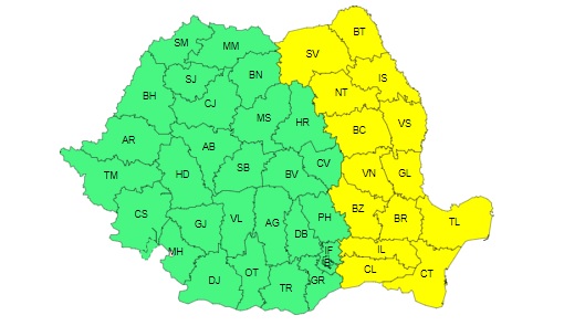 În intervalul menționat, în județele Suceava, Botoșani, Neamț și Iași va ninge moderat cantitativ și se va depune strat de zăpadă, local de peste 10…15 cm.