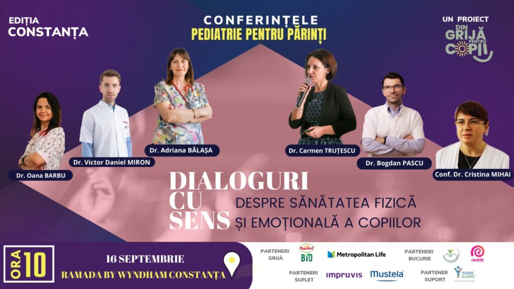 Conferințele „PEDIATRIE PENTRU PĂRINȚI” sunt parte dintr-un proiect de informare și educare pentru părinți inițiat de Asociația „Din grijă pentru copii”. Proiectul sărbătorește a treia ediție la malul mării, sâmbătă, 16 septembrie. Medici pediatri din București și Constanța se vor întâlni cu părinții constănțeni și vor răspunde întrebărilor acestora în legătură cu sănătatea fizică și emoțională a copiilor.