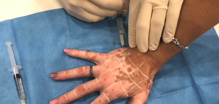 Celulele care fac obiectul acestei proceduri medicale se obțin prin recoltarea sub anestezie locală a unei cantități extrem de mici de țesut ce va fi dezagregat mecanic, fără intervenția vreunei enzime. Aceasta face ca reușita în grefare să fie de peste 90%.