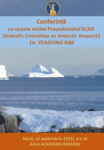 Comisia Națională de Cercetări Antarctice și Medii Extreme a Academiei Române organizează marți, 12 septembrie 2023, o conferinţă deschisă dedicată activității științifice internaționale desfășurate în Antarctica. Conferința este prilejuită de vizita dr. Yeadong Kim, președinte al Scientific Committee on Antarctic Research – SCAR, și va avea loc în Aula Academiei Române, începând cu ora 10.